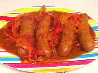 Slice red pepper, and onions, put them in frying pan. You can also choose to bake this, but I was in a rush and had to cook it in pan :).